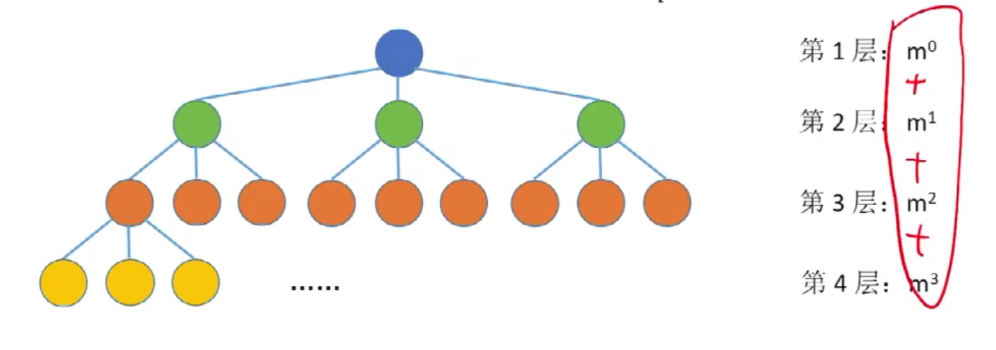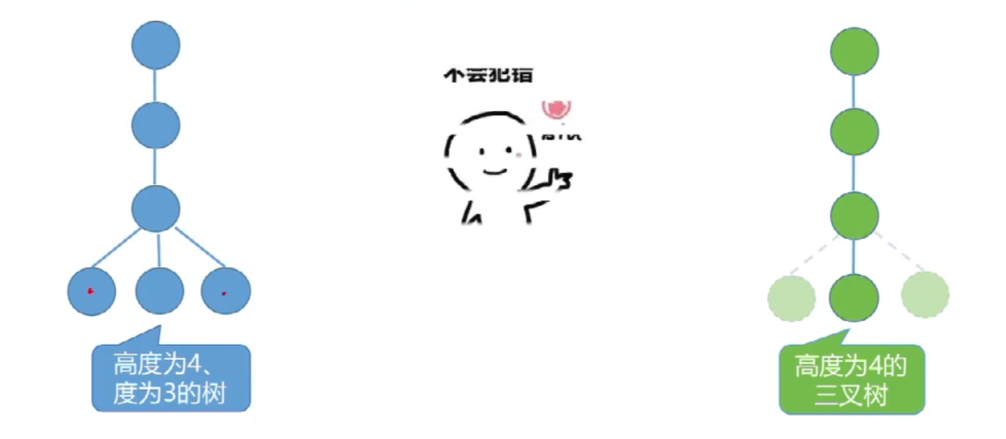 - 对应:高度为h,度为m的树至少有h+m-1个结点