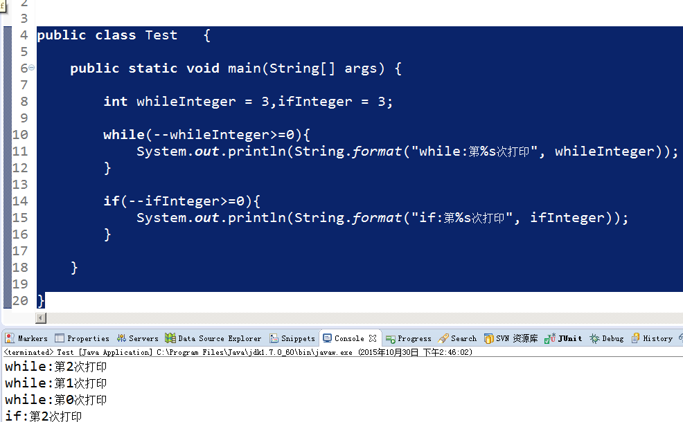 System.out.println(String.format("while:第%s次打印", whileInteger));