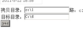 拷贝目录:<input type="text" name="mulu1">路:c:1<br>目标目录:<input type="text" name="mulu2"><br><input type="submit" value="yes" name="copy">