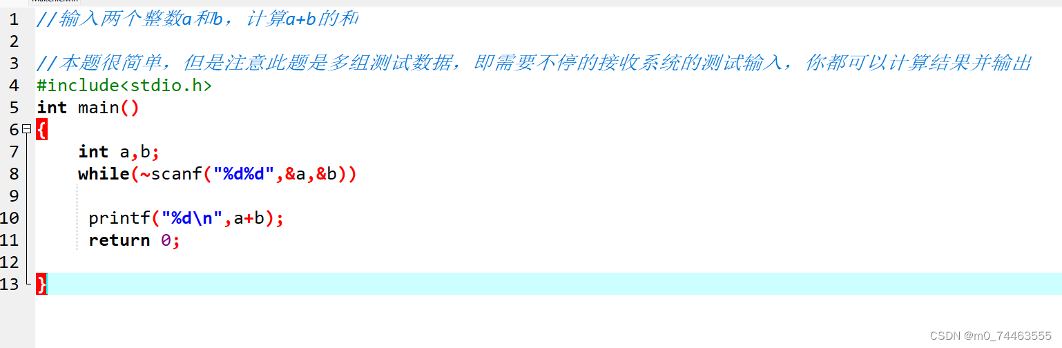 本题很简单,但是注意此题是多组测试数据,即需要不停的接收系统的测试输入,你都可以计算结果并输出