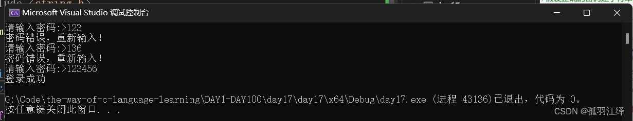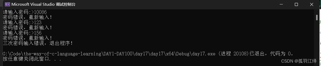printf("三次密码输入错误,退出程序!n");