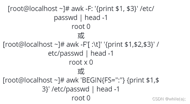 awk -v user=root -F: '$1 == user' /etc/passwd -v定义变量外部变量 “ ‘ ” :