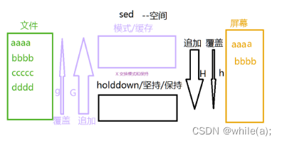 sed 是一种在线的、非交互式的编辑器,它一次处理一行内容。处理时,把当前处理的行存储在临时缓冲区中,称为“模式空间”(pattern space),接着用sed命令处理缓冲区中的内容,处理完成后,把缓冲区的内容送往屏幕。