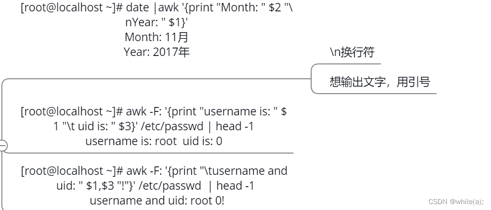 注意 awk调用外部变量时,外部使用双引号,内部也使用双引号,但需要转义内部的双引号2单引号