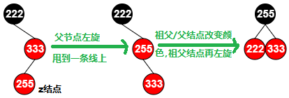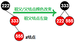 将兄弟结点与其父结点颜色交换,再将兄弟结点的右孩子染黑,然后将父结点左旋,最后将x设为树根,就跳出了循环。