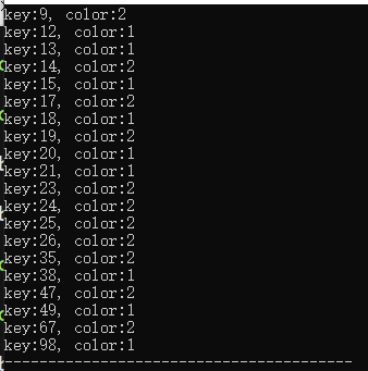 printf("key:%d, color:%dn", node->key, node->color); // 输出key和颜色
