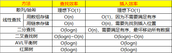 前面总结了查找效率,同时,插入一个数据也需要不能太慢。对于对于线性查找,在线性表中插入一个数据,最坏情况下需要移动所有数据,二分查找也一样。二叉查找树插入效率最好情况为O(logn),最坏会退化到O(n)。因此出现了AVL平衡树,它的所有结点的左右子树高度差不超过1,因此对于查找来说,是极好的,但是当有频繁插入数据操作时,可能每一次插入都需要进行调整,效率就又低下来了,于是有红黑树就好办了,红黑树的平衡要求没有AVL严格,但是又保证了查找的效率,综合两种因素,因此应用场景也比较多(Linux进程调度CFS、Nginx Timer事件管理、Epoll事件块的管理)。