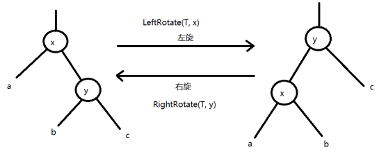 结点x和y不能为T.nil,左旋后,x成为y的左孩子,y的左孩子成为x的右孩子。看图写代码: