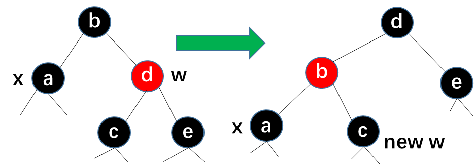 w = x->parent->right; // 左旋后,更新兄弟结点w,进入情况2、3、4某一种