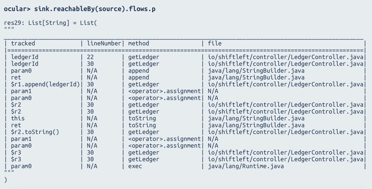 以上就是犹豫摩托最近收集整理的关于ShiftLeft 学习笔记(三)How to Query a CPGExamples for Using the Ocular Query Language (OQL)Using Ocular with an IDEHow to Identify DependenciesHow to Identify MethodsHow to Identify Types and PackagesHow to Identify ParametersHow to Trace Data FlowsSample 的全部内容,更多相关ShiftLeft内容请搜索靠谱客的其他文章。
