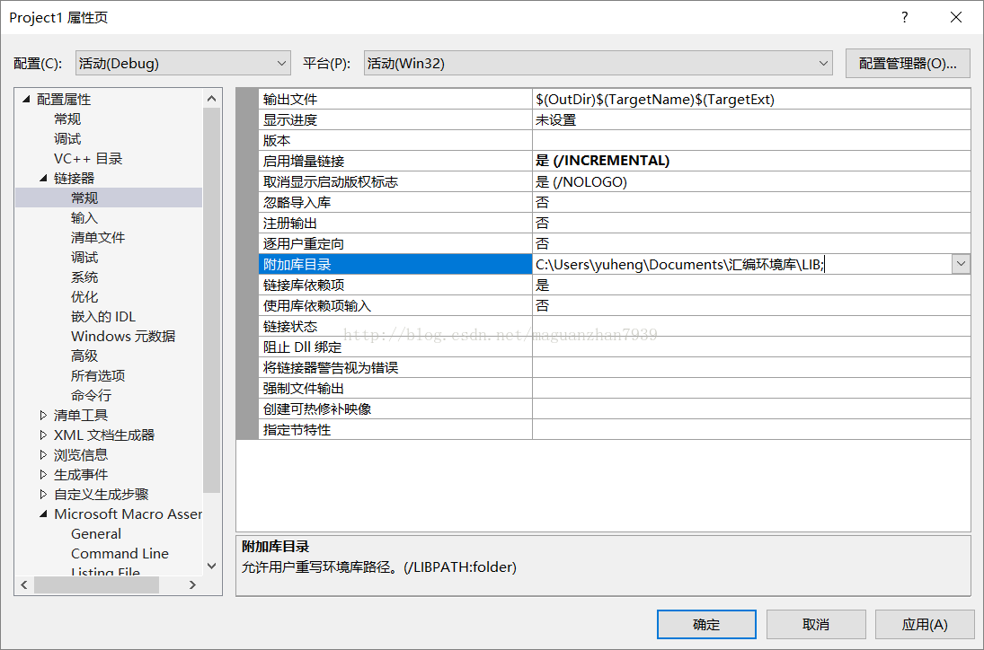 在这里添加你的masm的lib文件夹