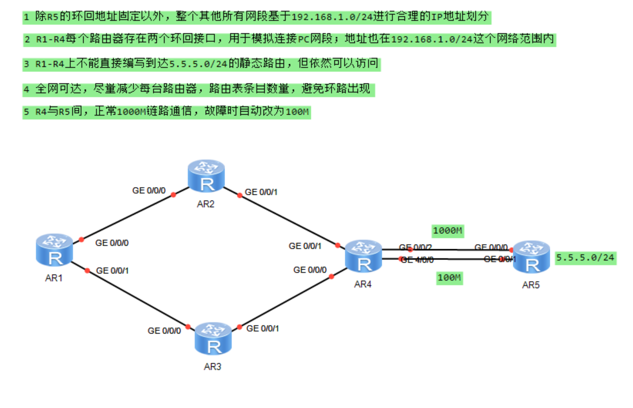 4.减少路由表的数量,即尽可能的汇总,避免环路利用空接口