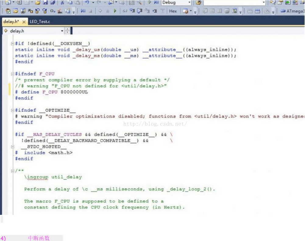 ,就可以使用两个标准的延时函数,分别是_delay_ms(double __ms)和_delay_us(double __us),虽然参数为double型,