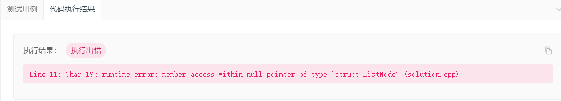 运行时错误: 成员访问了空指针指向的结构体类型'struct ListNode'