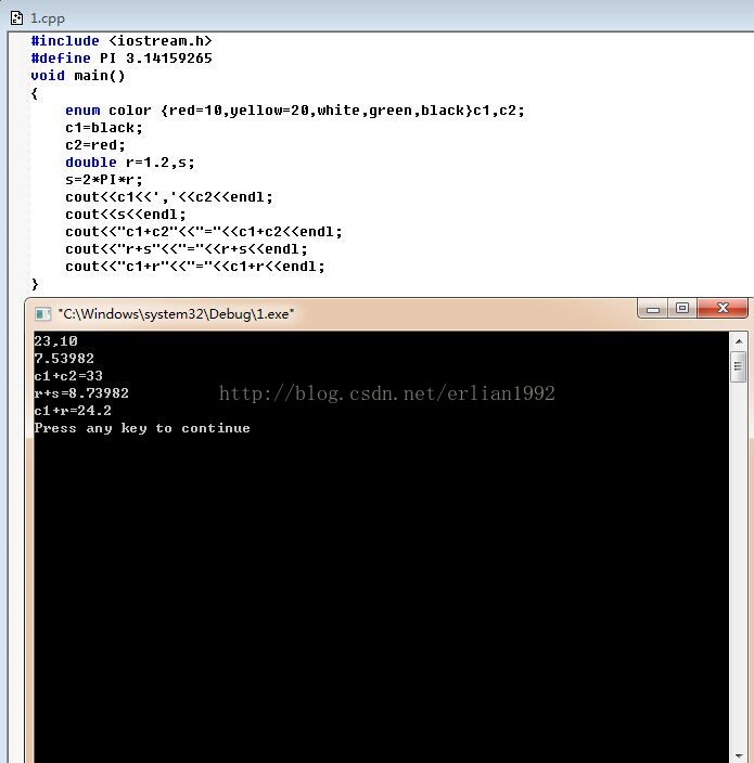输出一个枚举量的值是int型数值,而不是枚举符: