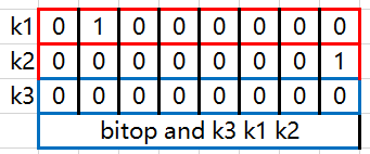 BITOP AND destkey key [key ...] ,对一个或多个 key 求逻与,并将结果保存到 destkey