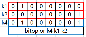 除了 NOT 操作之外,其他操作都可以接受一个或多个 key 作为输入,当 BITOP 处理不同长度的字符串时,较短的那个字符串所缺少的部分会被看作 0,空的 key 也被看作是包含 0 的字符串序列