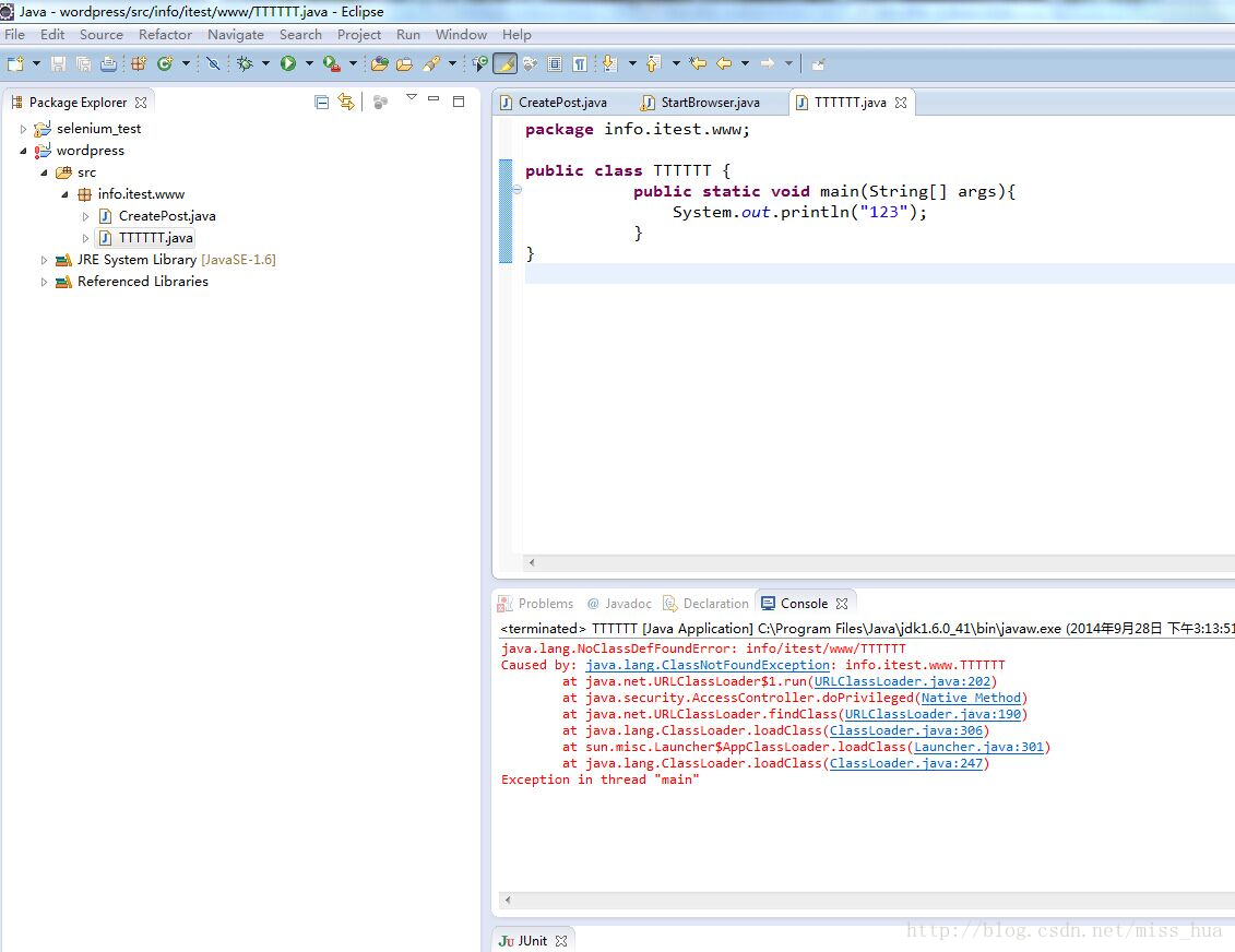 右侧Console视图报错 java.lang.NoClassDefFoundError: info/itest/TTT.class