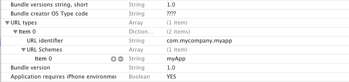 1. 在app2的info.plist中定义URL,就是在文件中添加URL types一项。可按下图进行添加。