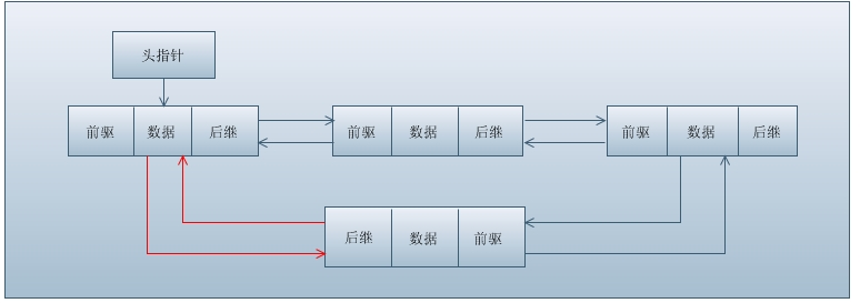 注意:如果有图中的红色箭头部分,则变为了单向循环链表。
