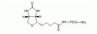 生物素-PEG-NH2是一种含有生物素和胺的线性异双功能PEG试剂。它是一种有用的带有PEG间隔基的交联或生物结合试剂。生物素能与亲和素和链霉亲和素结合,具有很高的特异性和亲和力。