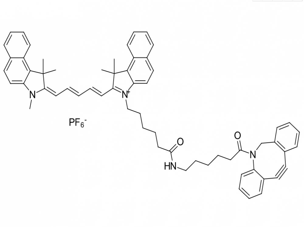 产品简介:陕西新研博美生物科技有限公司的Cy5.5 DBCO是氰基5.5荧光团的衍生物。DBCO集团使无铜生物相容性点击化学具有快速反应动力学和良好稳定性。该试剂与多种标准荧光仪器兼容,如成像仪、平板阅读器和显微镜。