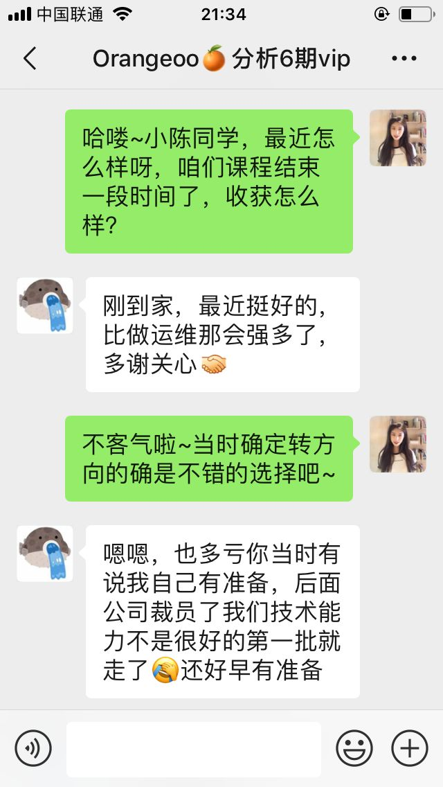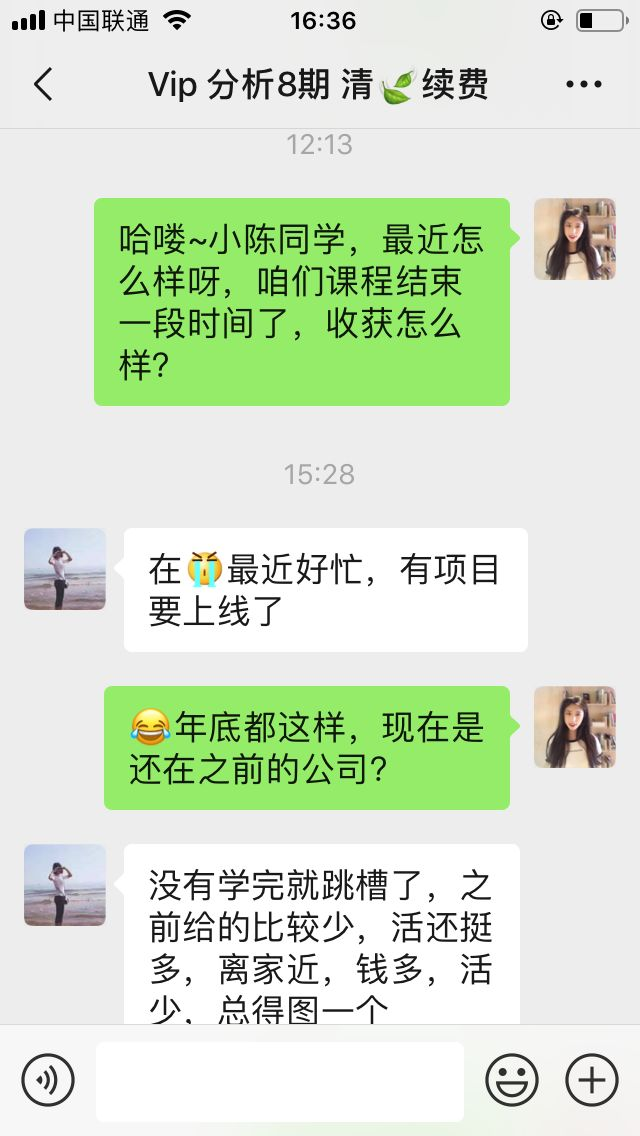 聊天截图已征得学员本人同意公开
