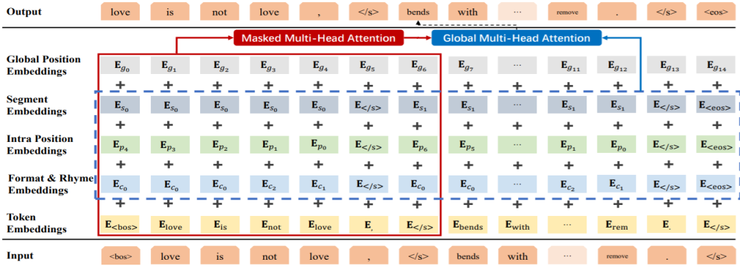 基于神经网络的文本生成在各种任务中取得了巨大的进步。大多数任务的一个共同特点是:在生成时,文本不受某些严格格式的限制。但是,我们可能会遇到一些特殊的文本范式,如歌词(例如给定乐谱配词)、十四行诗、宋词等。这些文本的典型特征有以下三个方面:(1)它们必须完全遵守预定的硬性格式。(2)它们必须遵守一定的韵律。(3)虽然受制于一些格式,但必须保证句子的完整性。就我们所知,基于预定义的硬性格式的文本生成还没有得到很好的研究。因此,本文提出了一个简单而优雅的框架 SongNet 来解决这个问题。该框架的骨干是一个基于 Transformer 的自回归语言模型。为了提高建模性能,研究者设计了多种符号来建模格式、韵律和句子的完整性。研究者也改进了注意力机制,促使模型捕捉到一些未来格式的信息。此外,研究者还设计了一个预训练和微调框架来进一步提高生成质量。在两个收集到的语料库上进行的大量实验表明,我们提出的框架在自动指标和人类评价方面都得到了明显更好的结果。
