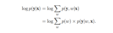 混合物旨在在模型之间分割训练数据,使得每个模型仅训练数据的子集,并且可以学习不同的模板结构。因此,一个模型不必同时适合所有底层模板结构。此外,它隐含地删除了混合物中除了一部分以外的所有异常训练样例。 让f1 , ...,fK是混合物中的K个模型。这些模型可以完全不相交或共享其参数的子集(例如,字嵌入,编码器或编码器和解码器两者)。 根据Guzman-Rivera等人(2012),我们引入了一个未观察到的随机变量w~Cat(1 / K),为每个输入分配每个模型的权重。 令pθ(y | x,w)表示具有给定分段w的输入x的输出y的概率。 每个点的可能性被定义为个体可能性的混合,
