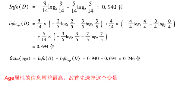 也就是首先树根上以及树节点是哪个变量呢?这些变量是从最重要到次重要依次排序的,那怎么衡量这些变量的重要性呢? ID3算法用的是信息增益,C4.5算法用信息增益率;CART算法使用基尼系数。决策树方法是会把每个特征都试一遍,然后选取那个,能够使分类分的最好的特征,也就是说将A属性作为父节点,产生的纯度增益(GainA)要大于B属性作为父节点,则A作为优先选取的属性。