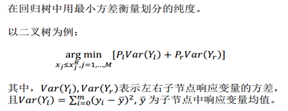 对于回归树(目标变量为连续变量):使用最小方差作为分裂规则。只能生成二叉树。