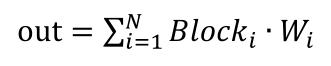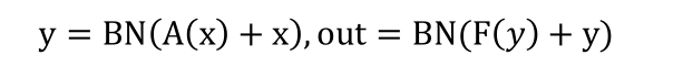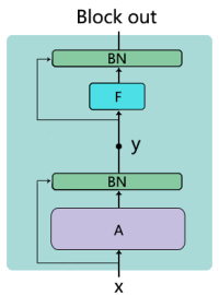 模型中的神经模块(Block)可以简化为上图的结构,所以,每个模块的输出可以表示为如下的公式: