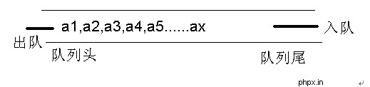 在PHP中队列以数组的形式表现。数组中的第一个元素作为队头,最后一个元素作为队尾,这样就可以操作这个队列了。