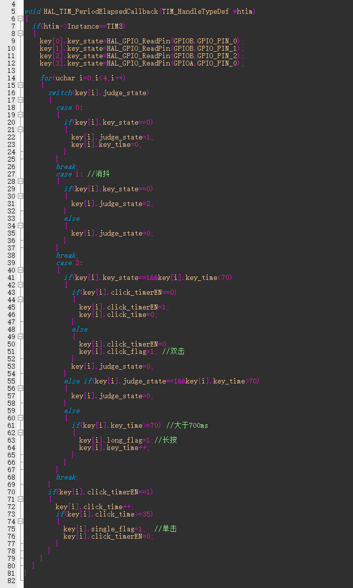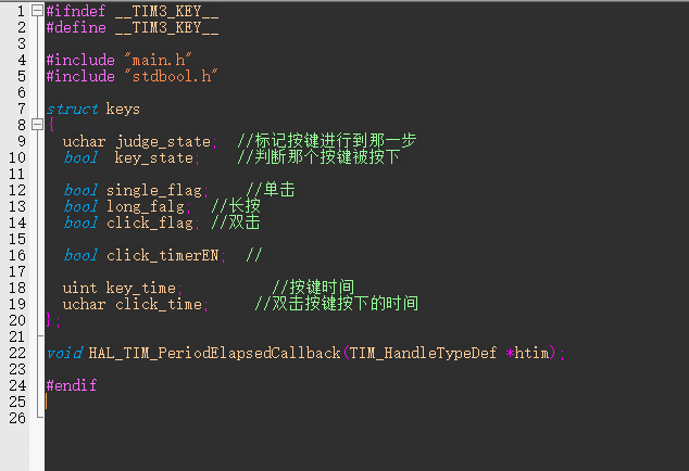 1.按键部分我是用定时器来扫描的,里面有按键关于单击、双击、长按的内容,这是根据b站的一位大佬(大佬的b站名字:01Studio)的教学视频里面学到的,总体来说对我有很大的作用