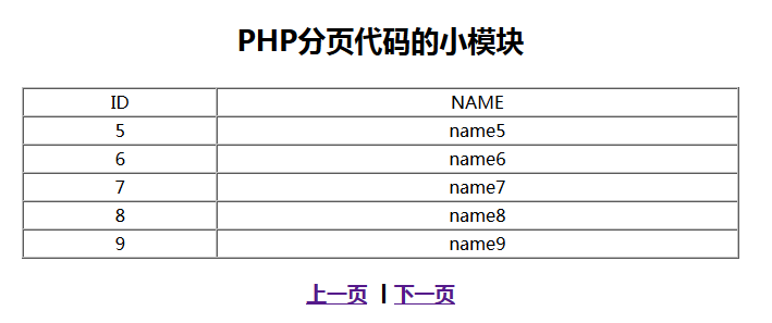 echo "<p>PHP分页代码的小模块</p>";