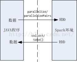 Java驱动程序将需要计算的数据通过parallelize方法,将数据传给Spark环境,转换为RDD;