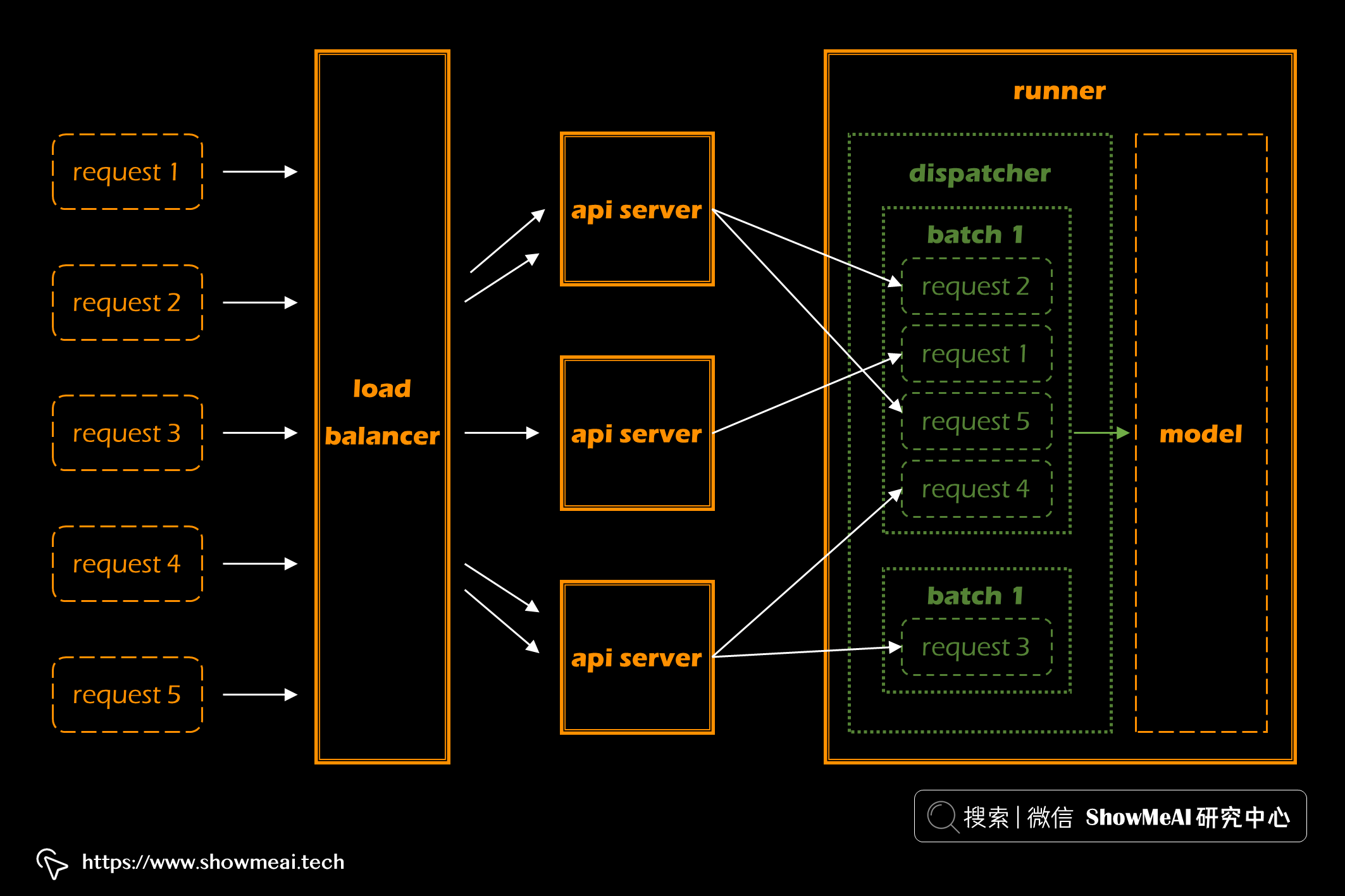 - 每个运行器通过在延迟和吞吐量之间找到权衡来动态地将请求分批分组