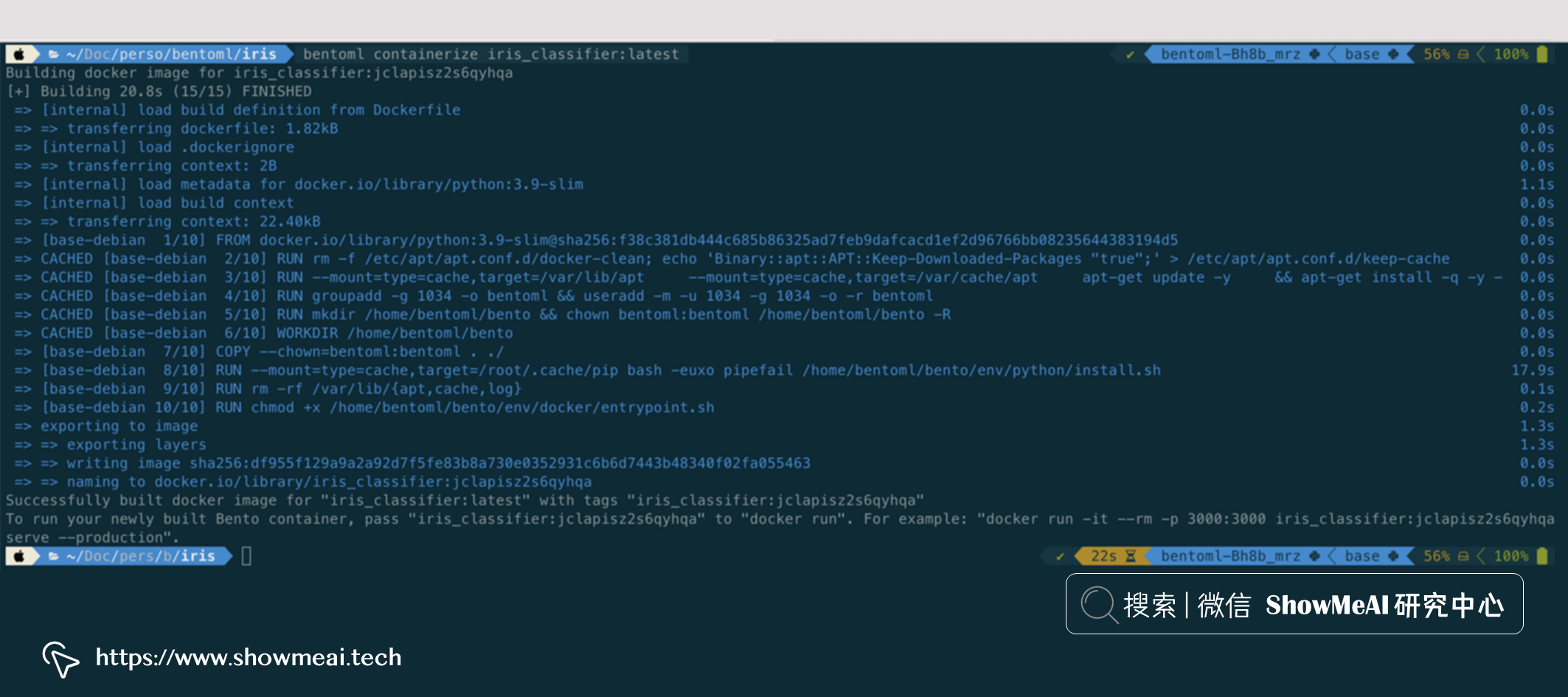 创建便当后,您可以使用dockerize命令来构建镜像,BentoML 提供了这个简单的命令方便使用。具体操作如下: