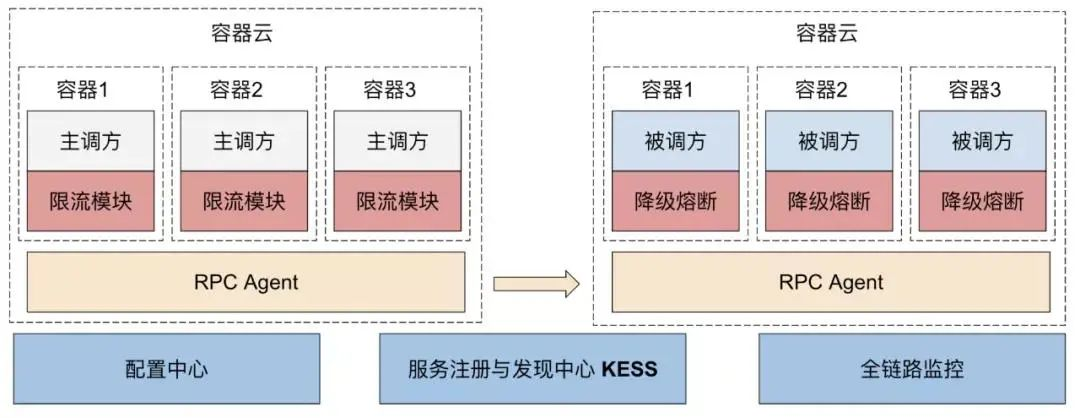 数据服务是部署在容器云环境,容器云是快手自研的弹性可伸缩的容器服务,部署在其中的 RPC 服务会注册到 KESS (快手自研服务注册与发现中心),供主调方去调用,如有离群坏点,会自动摘除。