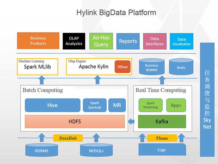 数据处理层:根据数据处理场景要求不同,可以划分为HADOOP、MPP、流处理等等。