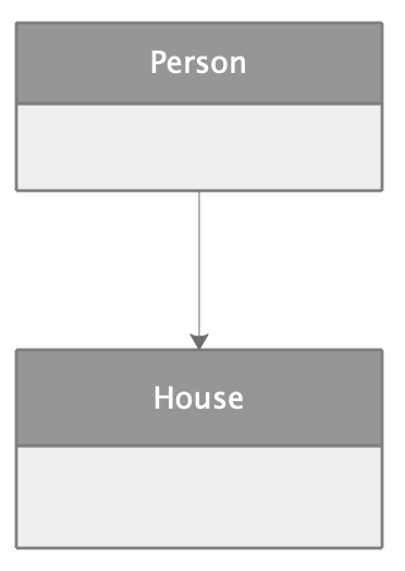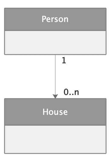 拿人和房子举例,有钱人都会去买房炒房,也就是说一个人有好几套房产,这就是一对多关联的例子。UML 图如下: