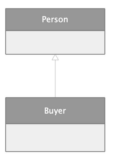 以交易为例,买家与卖家都是人,所以卖家与人、买家与人都是继承关系。UML 图如下:
