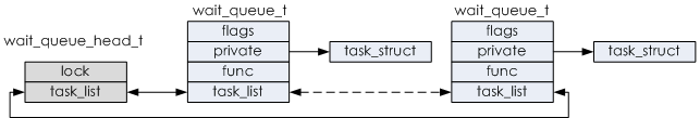 - task_list用作一个链表元素,将wait_queue_t实例放置到等待队列中。