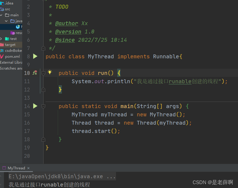在进行新建一个实现类,在把这个实现类给放在新建的thread类进行start方法进行启动