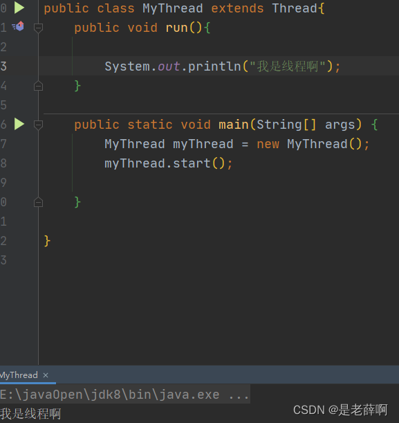 先让一个类进行继承Thread类,在里面进行run方法的编写,在进行新建该类进行start的启动