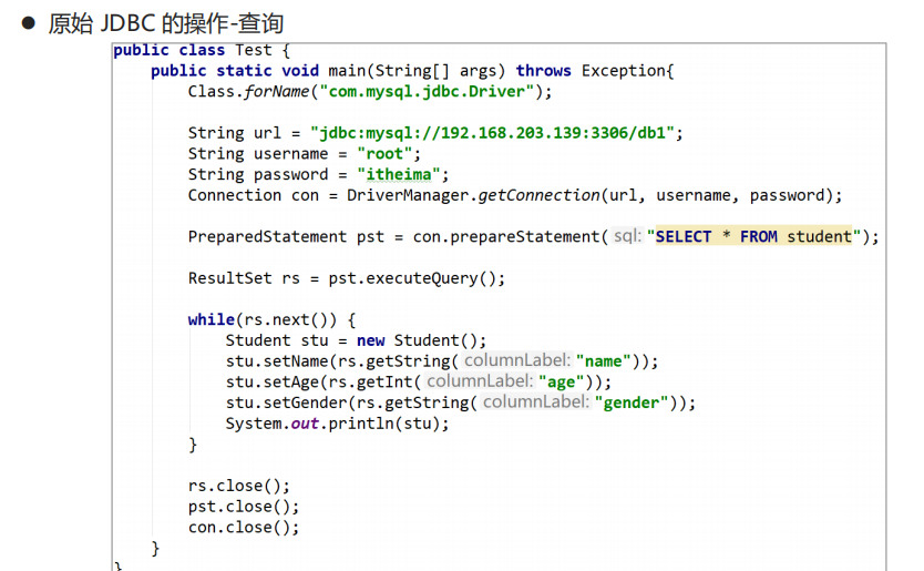 先看一眼原始jdbc的操作:
