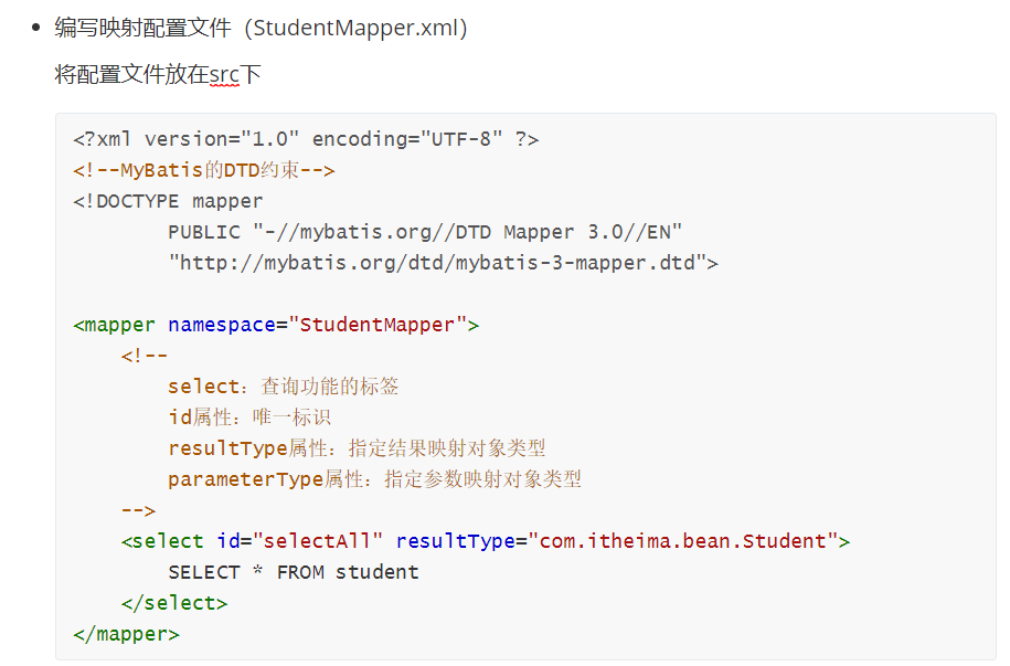 简而言之,就是不用映射配置文件,直接在mapper方法上使用注解进行编写SQL,要修改的地方就是去掉映射配置文件,在核心配置类中加上包扫描映射