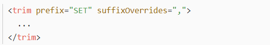 WHERE是使用的 prefixOverrides(前缀), SET是使用的 suffixOverrides (后缀)