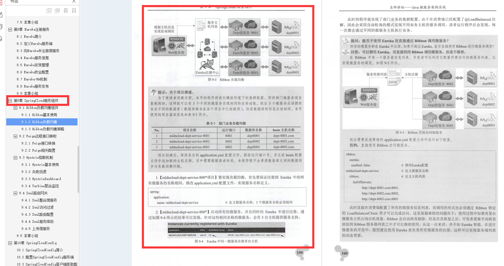 **第9章SpringCloud服务组件:**主要讲解Ribbon负载均衡、Feign接口转换、Hystrix熔断机制以及Zuul代理机制。
