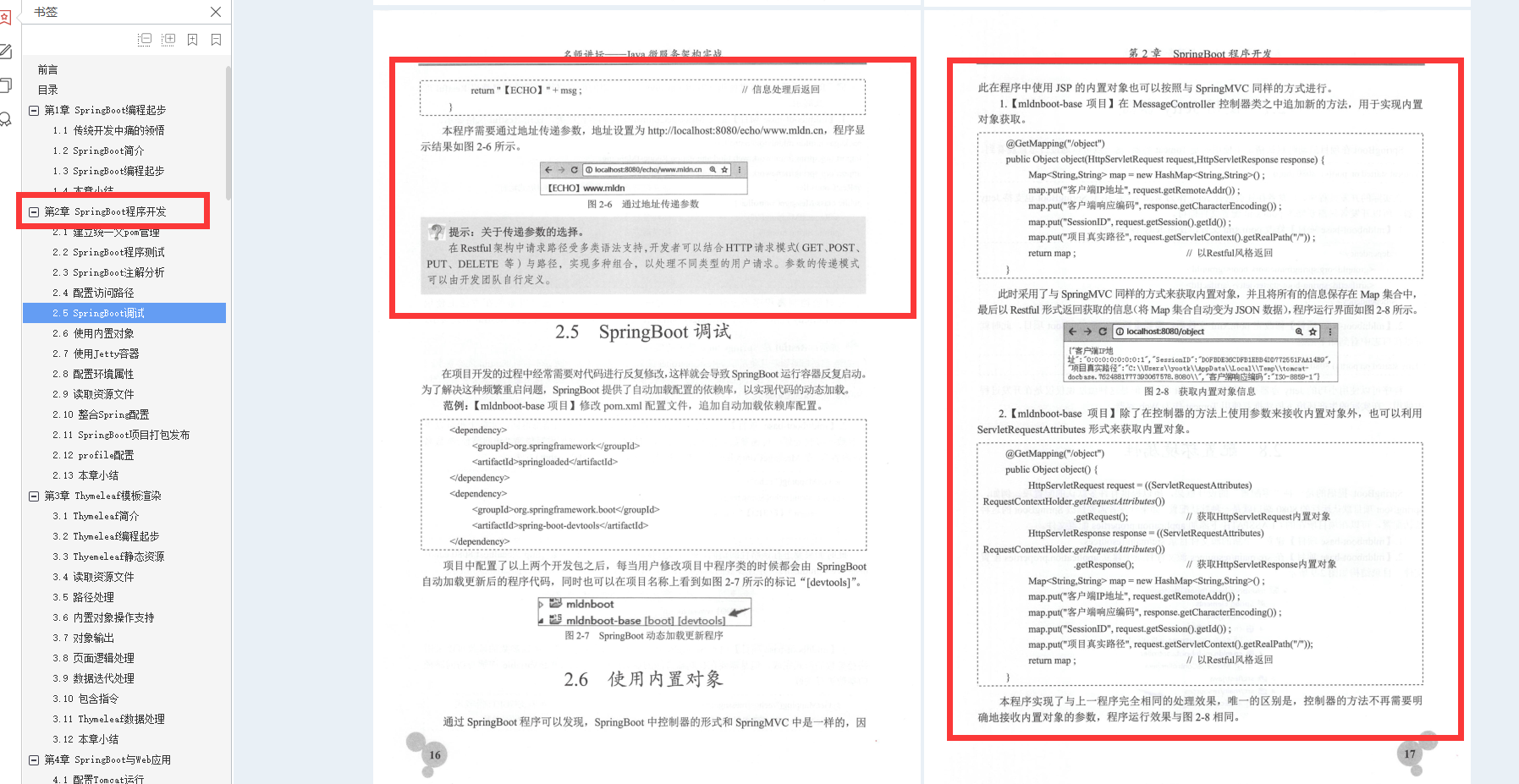 **第2章SpringBoot程序开发:**本章将为读者详细讲解SpringBoot开发常用的各项技术,包括代码测试、Jetty配置、资源加载、访问路径、profile配置、项目打包等。